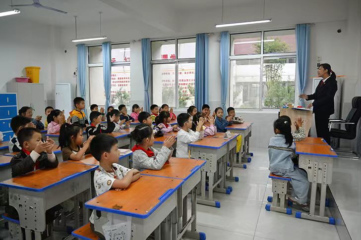 活动中,王鲁君法官以“知法守法,护航青春,共建平安和谐校园”为主题,围绕“我们身边的法律”、“认识与防范校园霸凌”以及“网络安全须知”三大板块,结合小学生的年龄特点和认知水平,用浅显易懂的语言进行了深入浅出的讲解。随后王鲁君法官通过以案释法、互动问答、穿上法袍现场体验等形式,向同学们阐述了法律与日常生活的密切关系,讲解了校园霸凌的表现形式、危害及应对方法,普及了网络行为规范、防范网络诈骗等网络安全知识,引导同学们明确行为边界,认清行为后果,提升辨别是非和自我保护的能力。